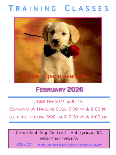 Conformation (Handling): These group classes are open to all. Vaccinated puppies are welcome. Bulk or Single night classes are available. Table and ramps are available. Fee is $13./class**. Show leash recommended.